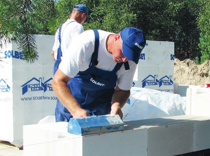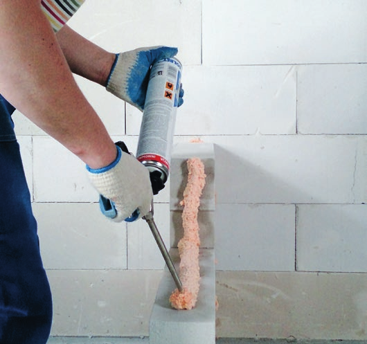 Проте адгезиви не можна використовувати для всього мурування загалом. Якщо стіни зводяться на поліуретановий клей, у місцях, де необхідне зміцнення (підсилення), неможливо використовувати армування в товщі стіни — це стосується і підвіконних зон. Для ділянок обпирання перемичок рекомендується використовувати стандартний розчин, оскільки точність розмірів балок перемичок відрізняється від точності мурувальних блоків.