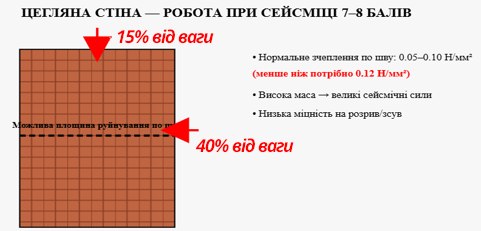 За рахунок цього досягається встановлене нормами ДБН нормальне зчеплення кладки по горизонтальному шву не менше 0,12 Н/мм² (120 кПа). Цей показник є основним критерієм сейсмостійкості любої кам’яною кладки. Адже при сейсміці, наприклад 7-8 балів, вертикальне навантаження на стіну збільшується до 15% від маси стіни, у той же час бокове навантаження збільшується до 40% від маси стіни. Газобетонна стіна у 3-5 разів легша, ніж наприклад, стіна з повнотілою цегли. А отже й бокові навантаження на стіну будуть у 3-5 разів меншими. При цьому стіна з цегли, яка має неточні геометричні розчини та покладена на звичайний будівельний розчин з немолотим піском, має низькі показники нормального зчеплення по горизонтальному шву на рівні 0,1 Н/мм² (100 кПа). В результаті чого має низькі показники сейсмостійкості.