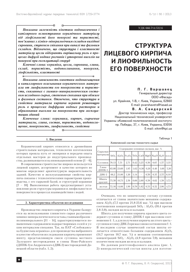 СТРУКТУРА ЛИЦЕВОГО КИРПИЧА И ЛИОФИЛЬНОСТЬ ЕГО ПОВЕРХНОСТИ
