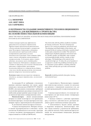 О потребности создания эффективного теплоизоляционного материала для жилищного строительства на основе пеностекольной композиции