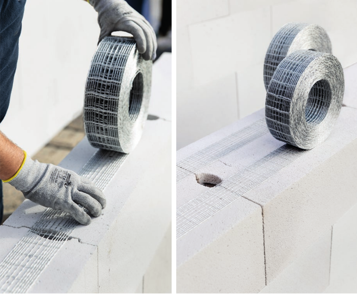 В обох випадках (SMMR 40 мм та 80 мм) перший шар вкладається на перший ряд блоків АГБ, другий шар — на третій ряд блоків АГБ, а останній шар — під останнім рядом блоків АГБ. Решта шарів мають бути рівномірно розподілені по рядах мурування з блоків АГБ. На краях SMMR необхідно належним чином заанкерувати за допомогою сталевих кутників-кляммерів мінімальним розміром 50 мм х 50 мм х 3 мм; кріплення до залізобетонної колони, фахверка або стіни має здійснюватися за допомогою відповідних цвяхів та шурупів.