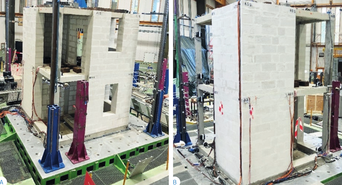 Неармоване мурування тривалий час переважало в європейському житловому будівництві завдяки його простоті, довговічності та тепловій ефективності. Однак, його сейсмічна вразливість була неодноразово продемонстрована під час землетрусів у Туреччині та Італії. Оновлена Європейська модель сейсмічної небезпеки ESHM 2020 [2] підкреслює, що ця слабкість також впливає на регіони помірної сейсмічності, де традиційне мурування часто не відповідає стандартам безпеки. Отже, мурування дедалі частіше замінюється залізобетоном, незважаючи на вищі витрати та вплив останнього на довкілля. На цьому тлі був запущений проєкт ECORE, щоб оцінити сейсмічні характеристики нової інноваційної легкої будівельної системи зі стінами з AГБ за допомогою випробувань на сейсмічному столі. Мета цієї системи — зменшити сейсмічні сили шляхом зниження маси конструкції за допомогою плит і балок з легкого бетону та автоклавного ніздрюватого бетону (AГБ) стін, мінімізуючи при цьому викиди CO2 за допомогою низьковуглецевого бетону. Сейсмічна стійкість додатково посилюється за рахунок використання блоків-опалубки з AГБ, які включають вбудовані залізобетонні колони, а також інноваційне з'єднання INODIS-P з переробленого матеріалу для перегородок. Модульний дизайн системи та прямий монтаж також дозволяють швидке та ефективне будівництво на місці. Консорціум ECORE включає багатопрофільну мережу університетів, дослідницьких інститутів та промислових партнерів з Німеччини, Греції, Румунії та Швейцарії. Технічний університет цивільного будівництва в Бухаресті координував експериментальну програму, яка була проведена на сейсмічному столі AZALEE у CEA Paris-Saclay.
